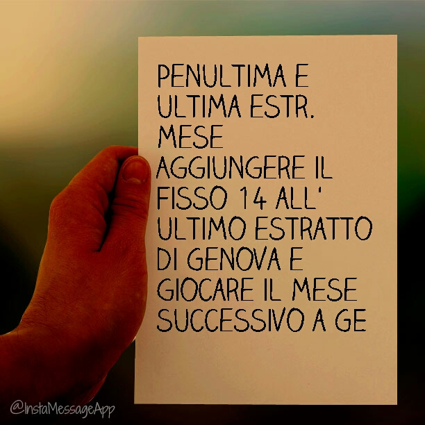 Quindi sommando il fisso 14 al 48 e al 78 si otterranno le due future ambate da giocare a Genova per il mese di settembre: in questo caso le due ambate da giocare a Genova per il mese di settembre, saranno il 62 e il 2.